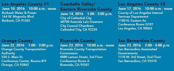 This June, the MSRC will be holding a series of six regional workshops throughout the South Coast Air District to gather public input on ideas for clean transportation funding initiatives that stakeholders would like to see considered in the MSRC's upcoming two-year Work Program. The MSRC's Work Program sets the project categories for which funding will be available during FYs 2016-2018, such as alternative fuel vehicles and infrastructure, transportation demand management programs and education and outreach programs. For the last round of workshops in 2014, nearly 150 stakeholders participated from the public sector, private companies, academic institutions and non-profit organizations. The MSRC is hoping to break this record attendance by expanding the pool of workshop participants. While the main workshop information presented will be the same for all six workshops, the stakeholder dialog promises to be as rich and diverse and as the attendees who participate. There are six dates and locations to choose from: