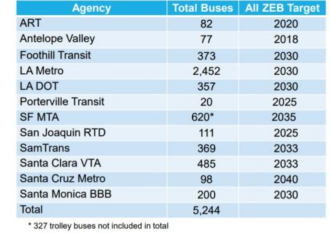 Twelve transit agencies already have made the commitment to make a full transition to ZEBs (see graphic).These agencies represent about 40 percent of all buses in California.