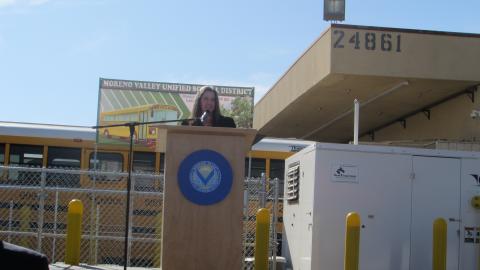 The MSRC closes out 2019 by joining two of its school district project partners in the grand opening events for their new compressed natural gas (CNG) fueling stations in the South Coast region. On November 13, MSRC Contracts Administrator Cynthia Ravenstein was on-hand to participate in the Moreno Valley Unified School District’s ribbon cutting ceremony for its new CNG station (see photo below). With the help of $200,000 in Clean Transportation Funding from the MSRC, the school district invested in the limited-access facility to support its fleet of nearly 30 CNG school buses.